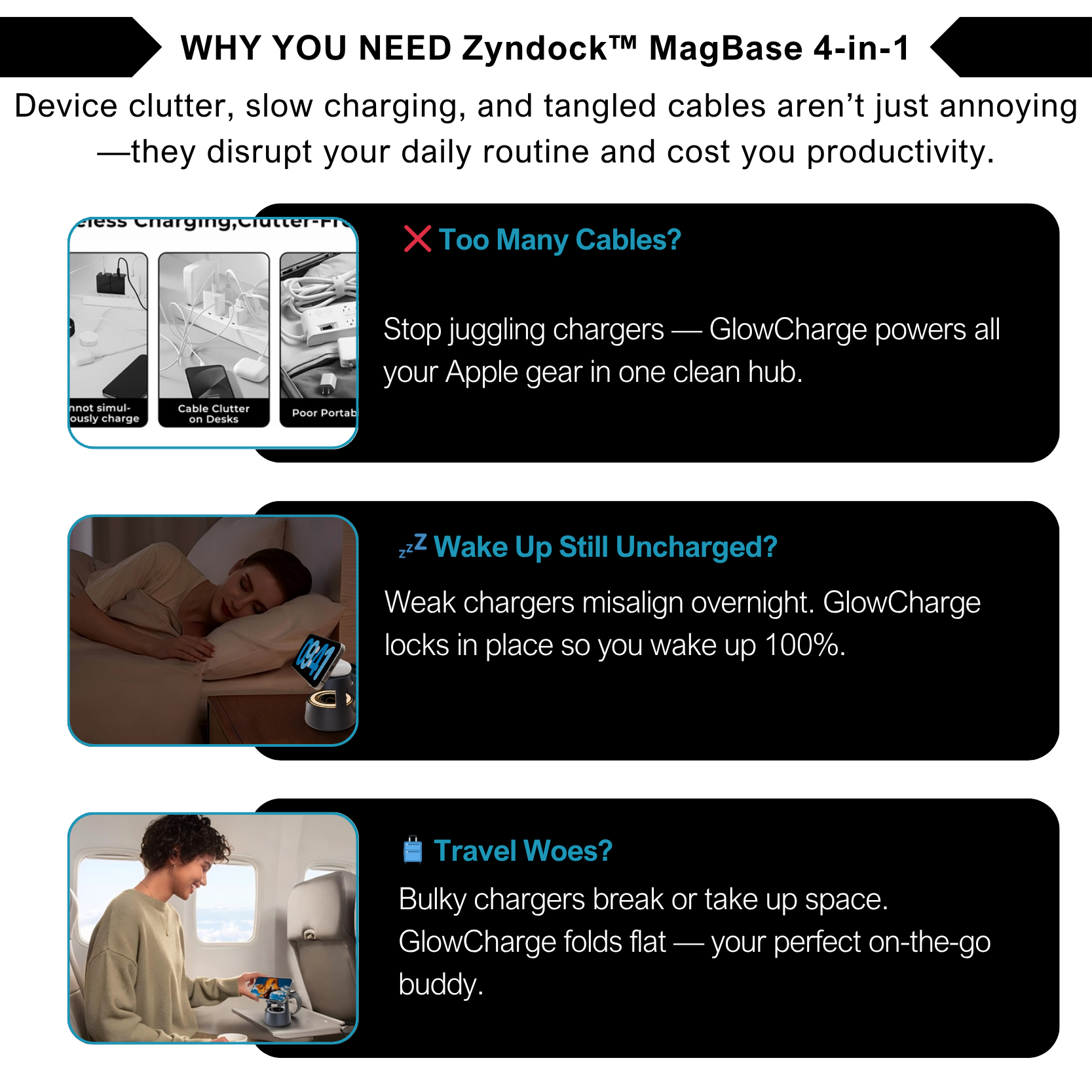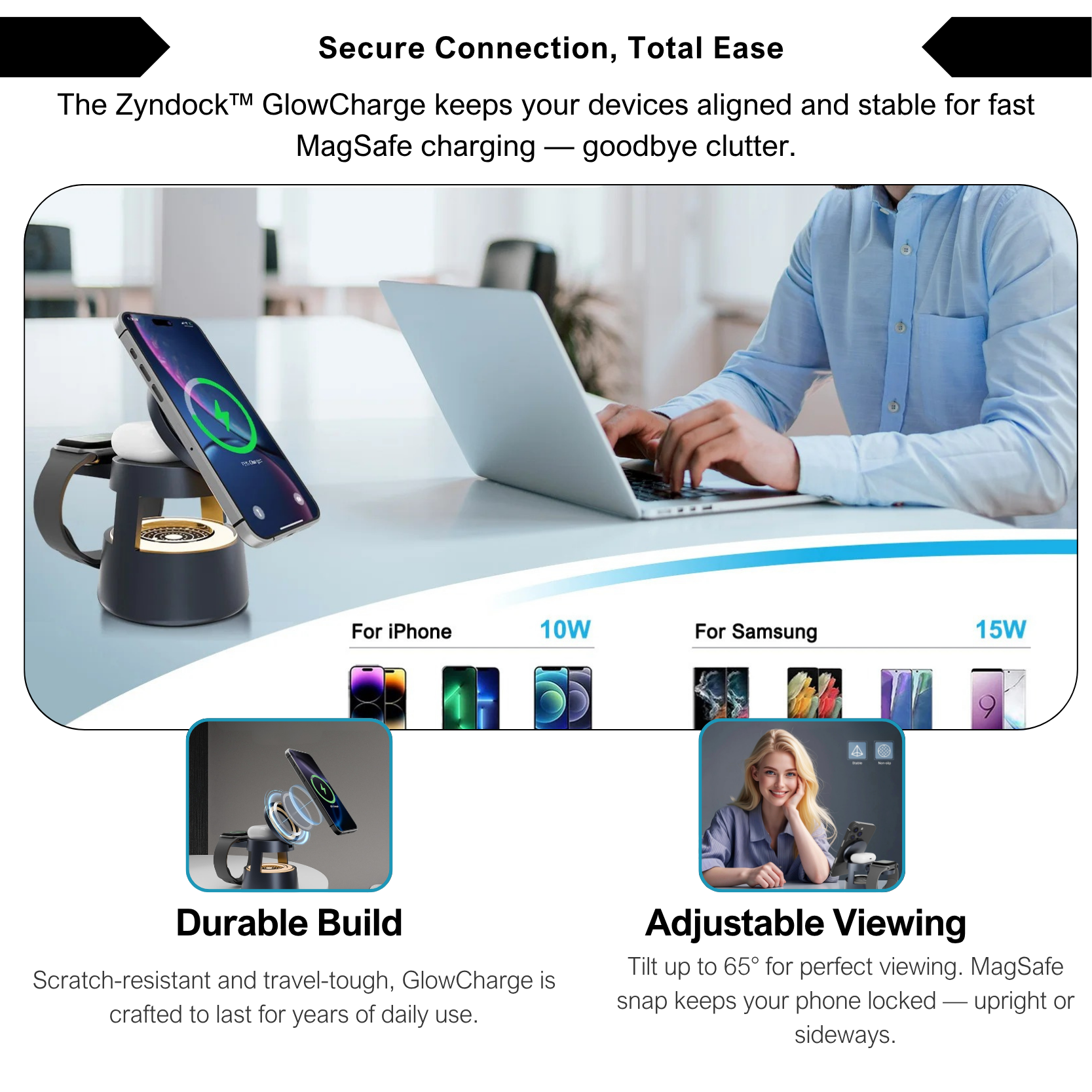 After countless hours of user feedback, design innovation, and real-world testing, Zyndock™ GlowCharge has emerged as a next-gen charging hub for modern lifestyles. Customers consistently report faster charging performance, seamless magnetic alignment, and an elegant, space-saving design that transforms both work and rest spaces.